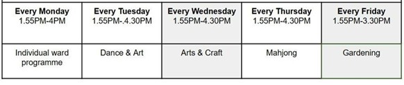 Weekly befriending and volunteering activities at the wards