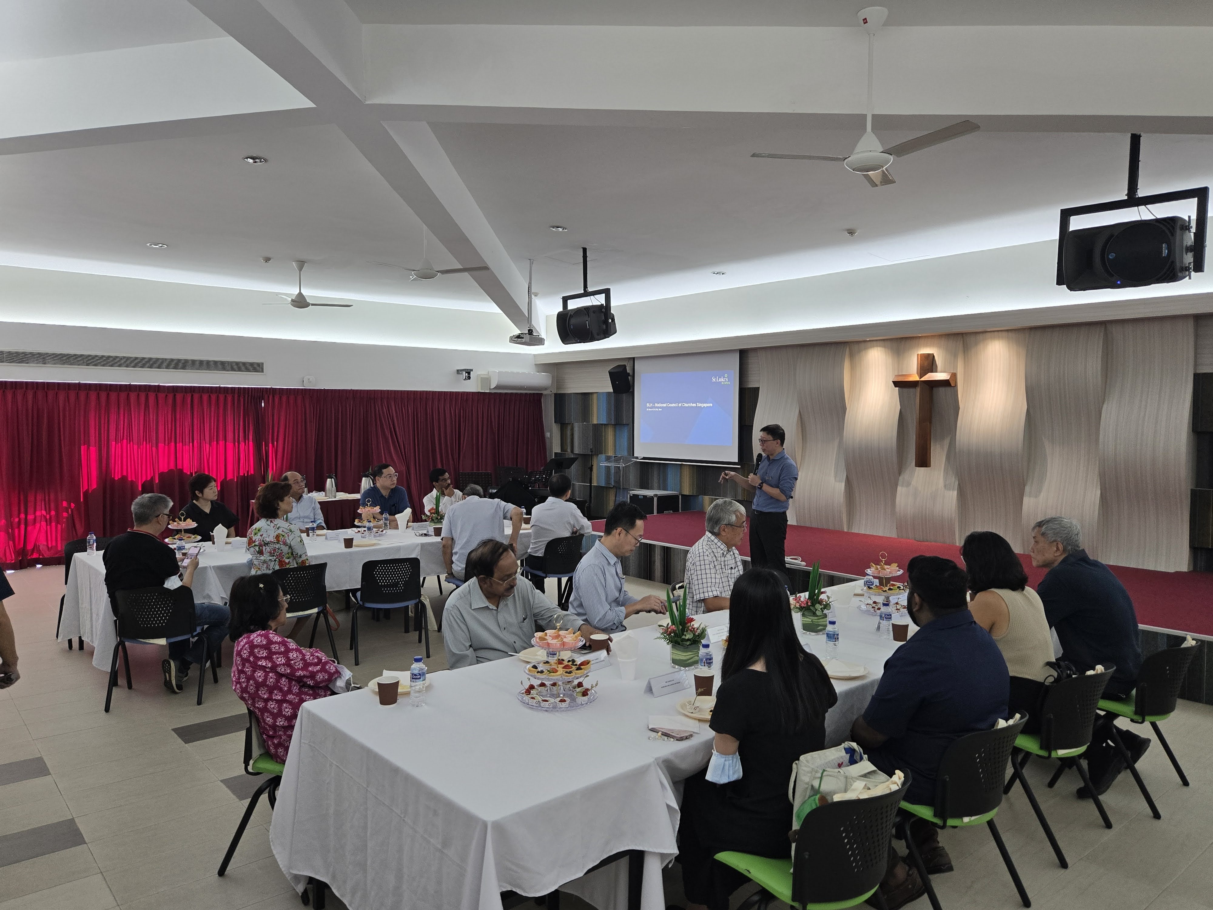(L-R) Mr Kelvin Lee (SLH), Mr Eden Liew (NCCS), Rev Dr Ngoei Foong Nghian (NCCS), Mrs Mathews Thomas (St Thomas Orthodox Syrian Cathedral), Ms Lanny Widjaja (NCCS), Rev Mathews Thomas (St Thomas Orthodox Syrian Cathedral), Mr Chua Kok Wan (Prison Fellowship of Singapore), Bp Philip Lim (NCCS/Methodist Church in Singapore), Rev Vincent Morrison (King of Glory Church), A/Prof Tan Boon Yeow (SLH), Rev Samuel Morrison (King of Glory Church), Ms Jesslyn Ng (Koinonia Inclusion Network), Rev Dr Chiang Ming Shun (NCCS), Ms Cherie Ng (Koinonia Inclusion Network), Rev Martin Yee (Lutheran Church in Singapore), Rev Maria Tok (City Harvest Church), Ms Shalynn Siow (NCCS)