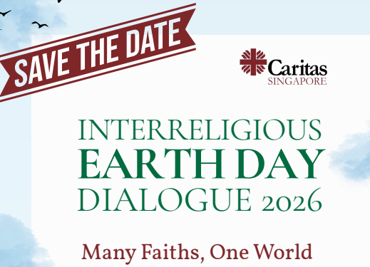 Interreligious Earth Day Dialogue 2026 will take place on Wednesday, 22 April 2026! Caritas Singapore is honored to host this meaningful gathering once again. Together, we aim to inspire collaborative action and nurture our shared commitment to caring for the environment. Please save the date! Official invitations and further details will follow soon.