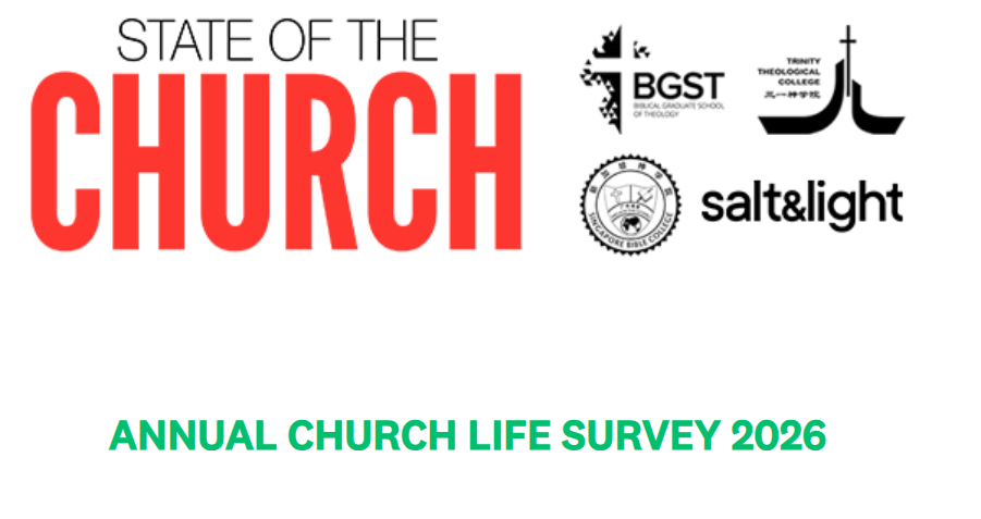 State of the Church (SOTC) We would like to invite your church to participate in a survey on the State of the Church (SOTC) in Singapore. The SOTC studies began in 2022 as a collaboration between Biblical Graduate School of Theology (BGST), Singapore Bible College (SBC), Trinity Theological College (TTC), and Salt&Light. Three more studies on Churches were conducted: Attracting Young Adults (2023), The Church and Seniors (2024) and The Church and Children (2025).